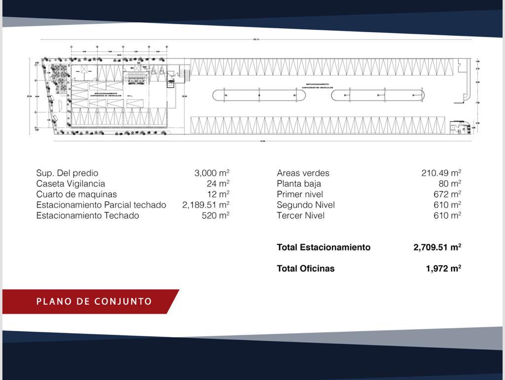 - 3 niveles de 651 m² cada uno. (21 metros de frente por 31 metros de fondo).